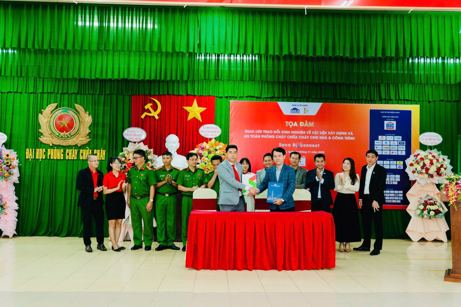 Sáng 14/11, Ban Xúc tiến Thương mại thuộc Hiệp hội Xây dựng và Vật liệu Xây dựng TP.HCM (SACA) phối hợp với Trường Đại học Phòng cháy Chữa cháy (Bộ Công an) tổ chức chương trình SACA BizConnect lần 2 tại cơ sở 3 của Trường Đại học PCCC. Sự kiện với chủ đề "Giao lưu - Trao đổi kinh nghiệm về Vật liệu Xây dựng và An toàn PCCC cho nhà và công trình" thu hút sự tham gia của gần 300 đại biểu gồm đại diện Trường ĐH PCCC, doanh nghiệp hội viên SACA, nhà thầu, chủ đầu tư, cơ quan quản lý và nhiều đơn vị sản xuất vật liệu xây dựng hàng đầu.